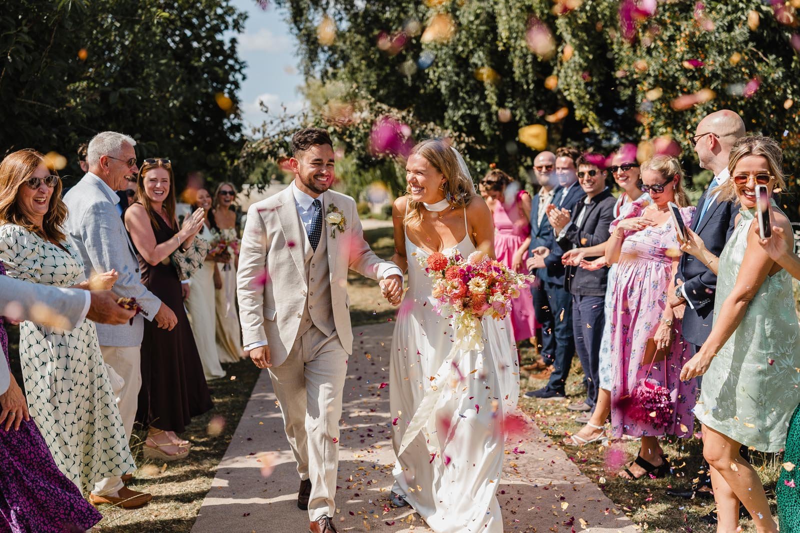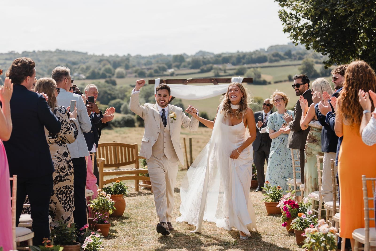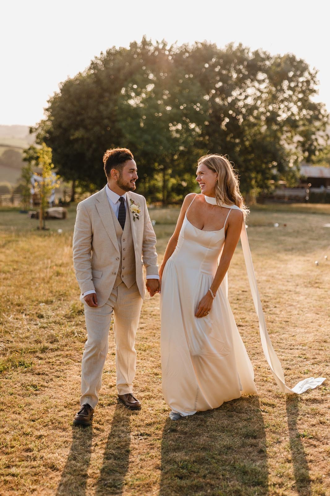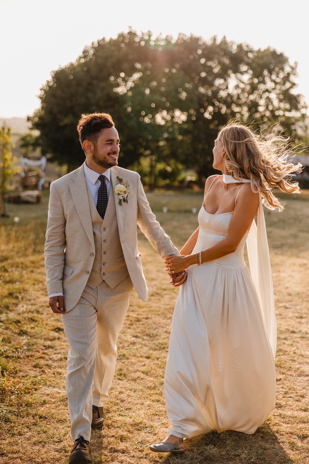 As the afternoon drifted into evening, the light turned that perfect golden shade the Cotswolds does so well. We slipped away for ten minutes of couple portraits in the fields, and honestly, those are always some of my favourite photos of the day. No awkward posing. Just movement, laughter, and that we just got flipping married glow.