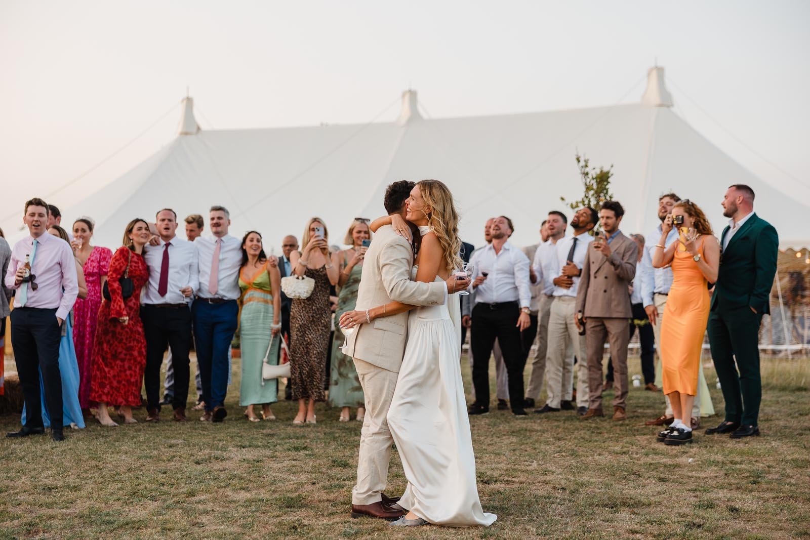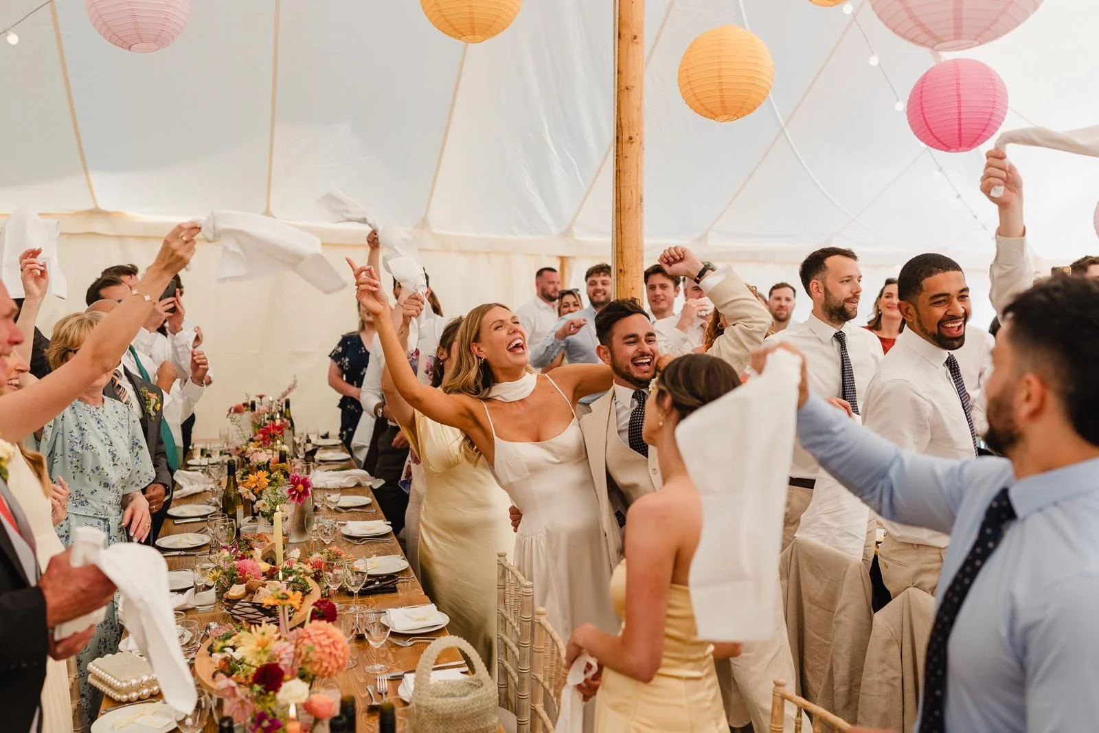 There’s something effortlessly magical about a summer marquee wedding in the Cotswolds: the rolling hills, the soft golden light, and the warm summer atmosphere as guests sip drinks outside and watch the sun set.