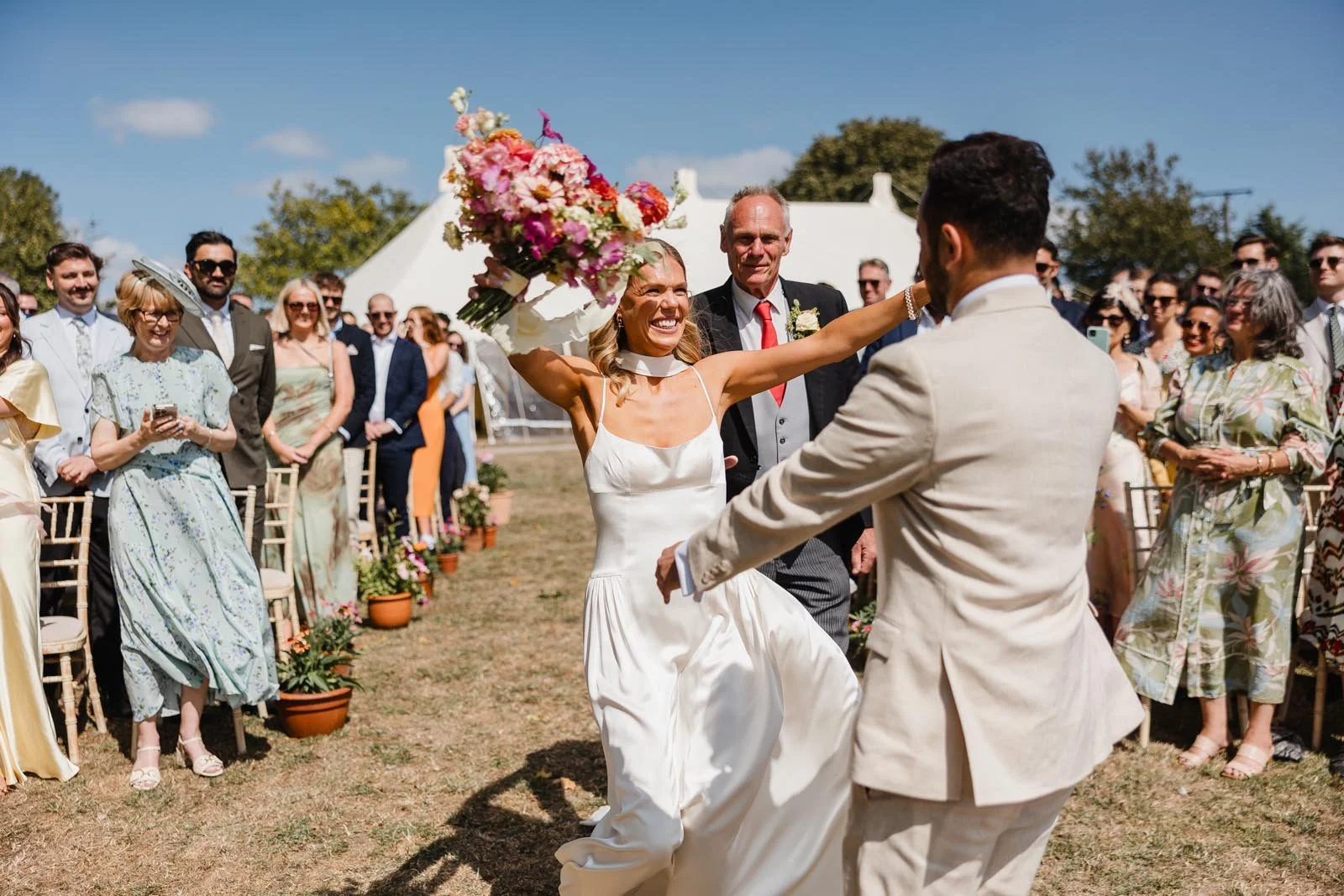 One of my favourite things about summer weddings is how naturally everything flows. There’s no rushing guests inside, no battling the elements. Just countryside views, drinks flowing outside and one of my favourites… an outdoor ceremony.