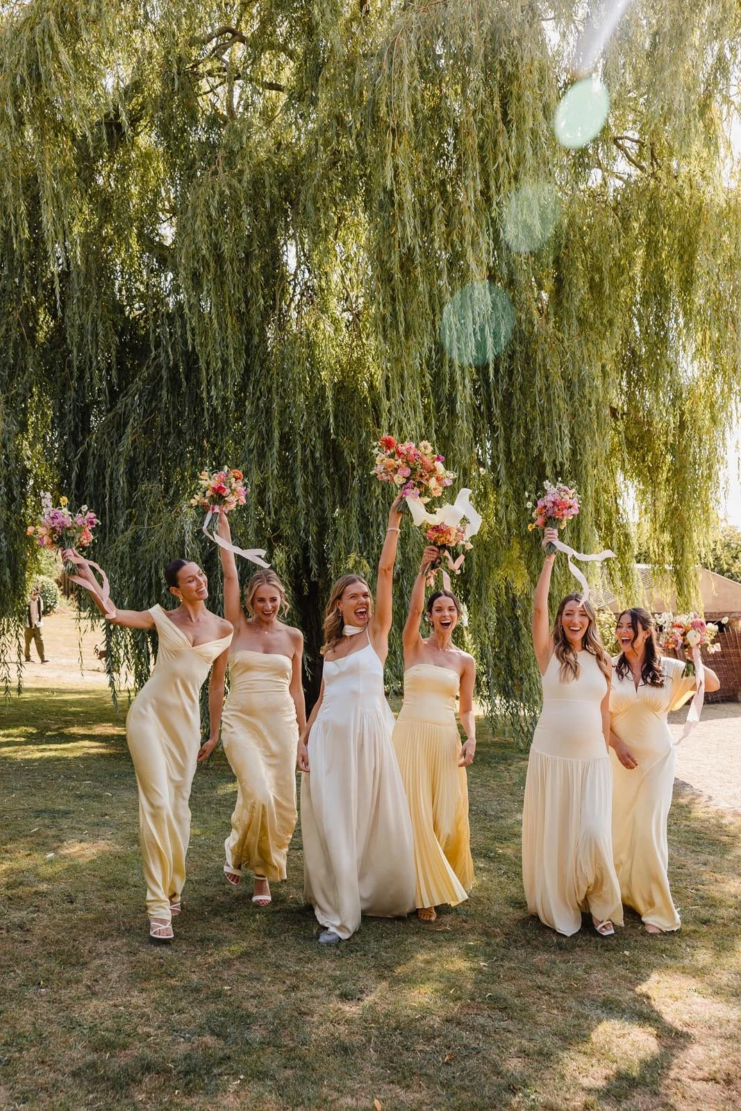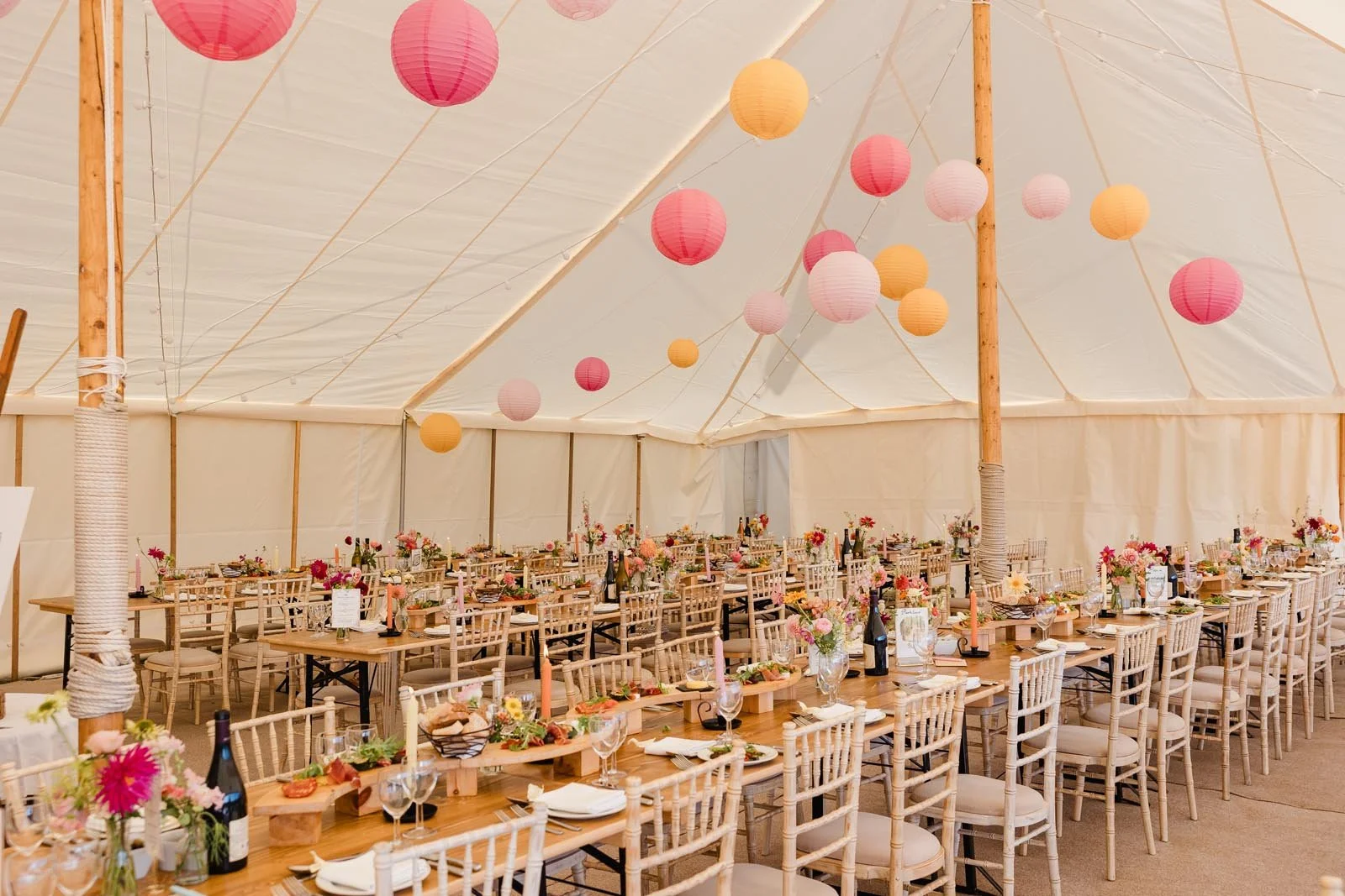 This one was chic but relaxed. Long tables dressed in pops of colours, thoughtful details and the florals by Wren & May were insanely beautiful. These had my name all over it. You know how much I adore flowers and these bright colours with the yellow bridesmaid dresses were incredible for this chic summer marquee wedding in the Cotswolds.