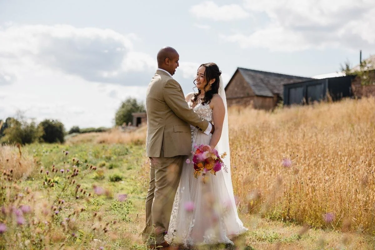 Just before first dance, we snuck away for a few quiet portraits. The fields glowed, the sky softened, these are always my favourite moments, when the day pauses briefly and the couple can just be together.